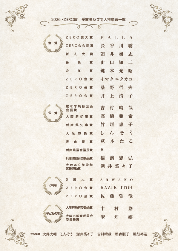 2026・ZERO展 各賞受賞者は、厳正なる選考の結果、以下の方々に決定しました。